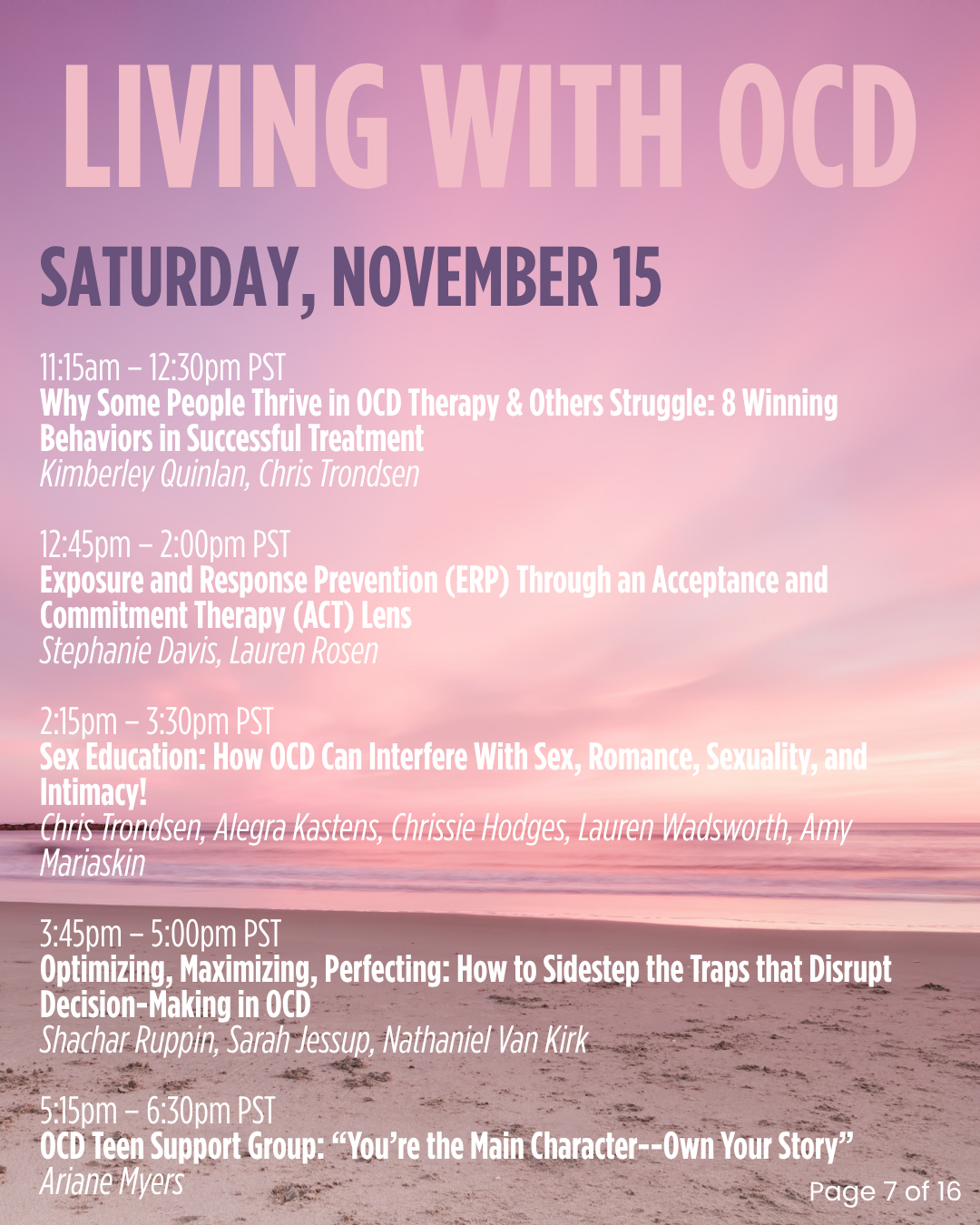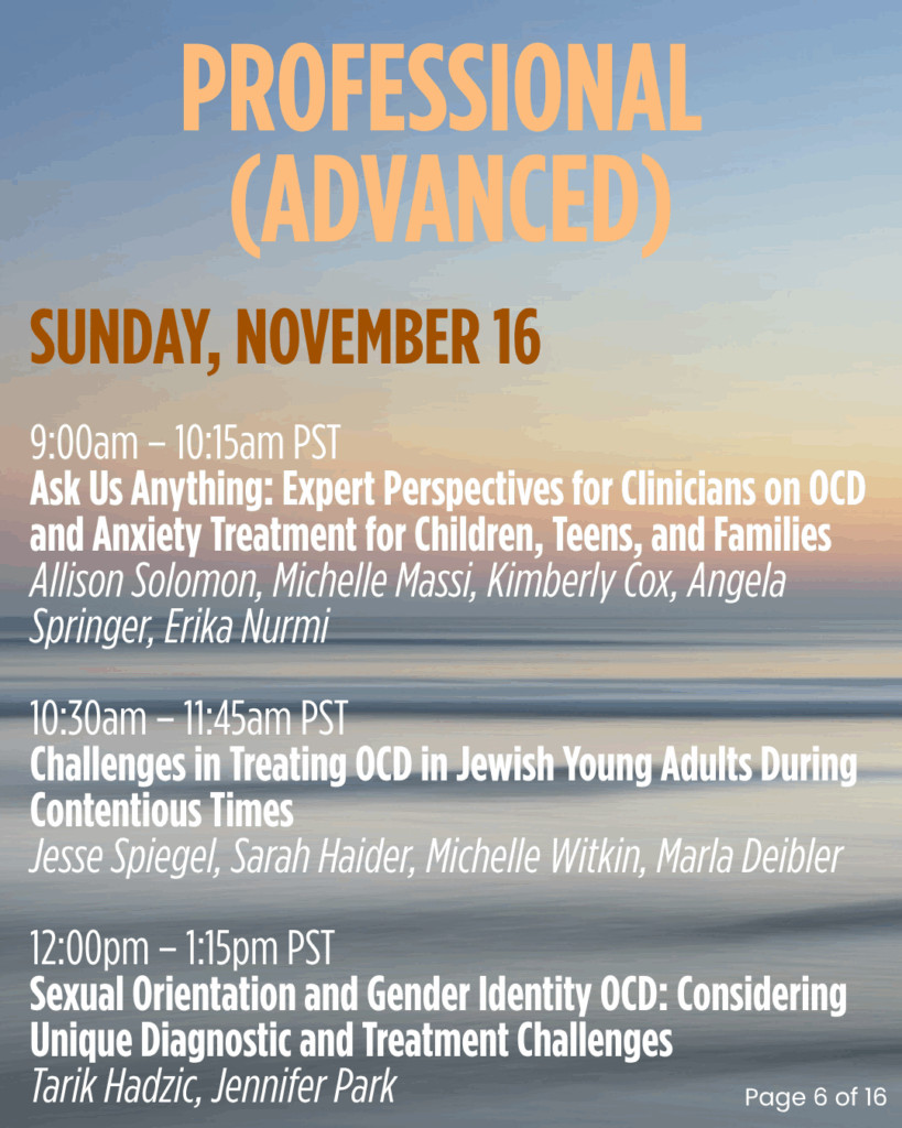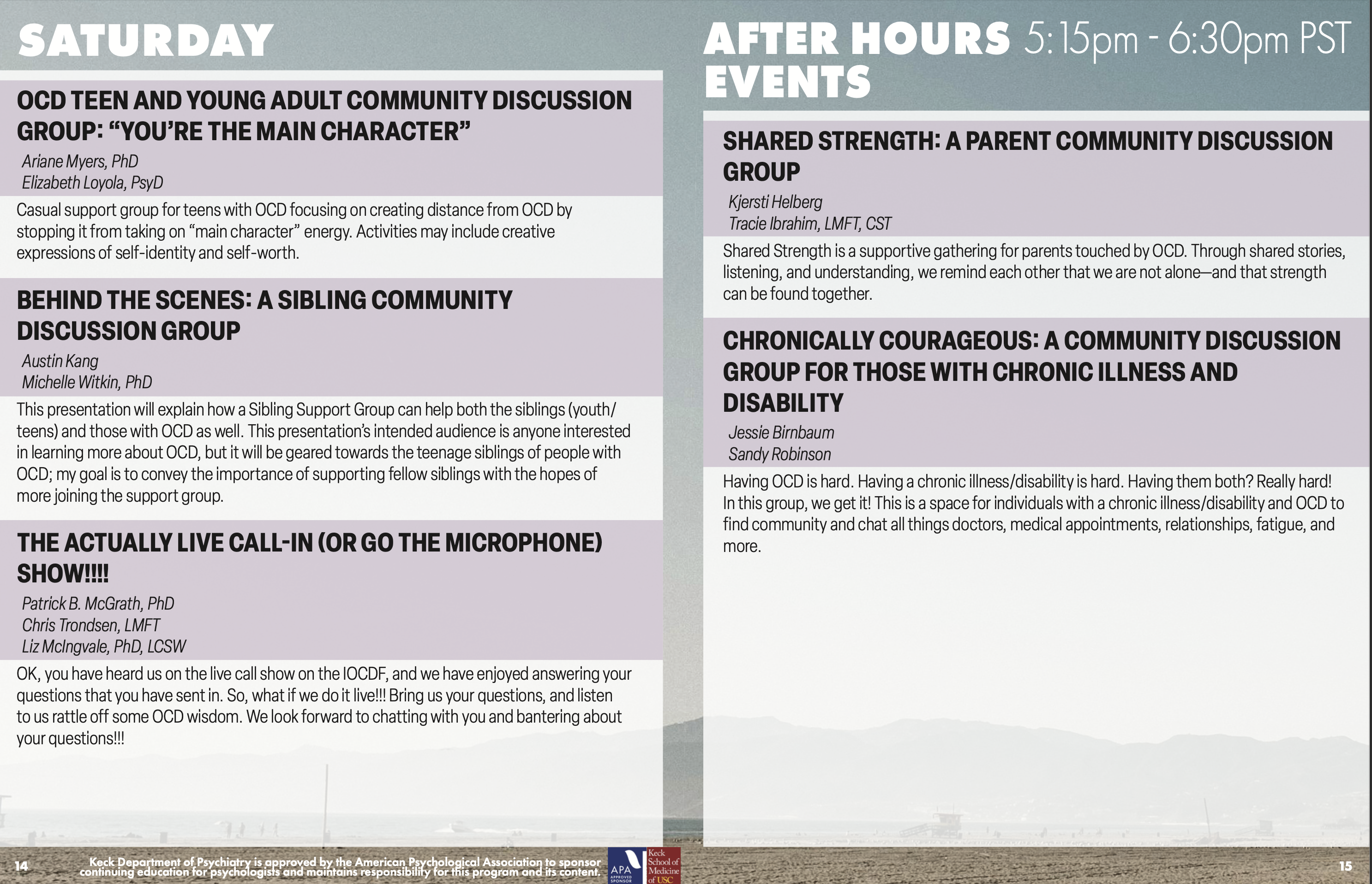 We look forward to seeing you at our Online OCD Conference, a Global Event, on November 15 and 16, 2025! Make sure to register today! Email us with any questions: info@ocdsocal.org! Register today! https://ocdconference.eventbrite.com