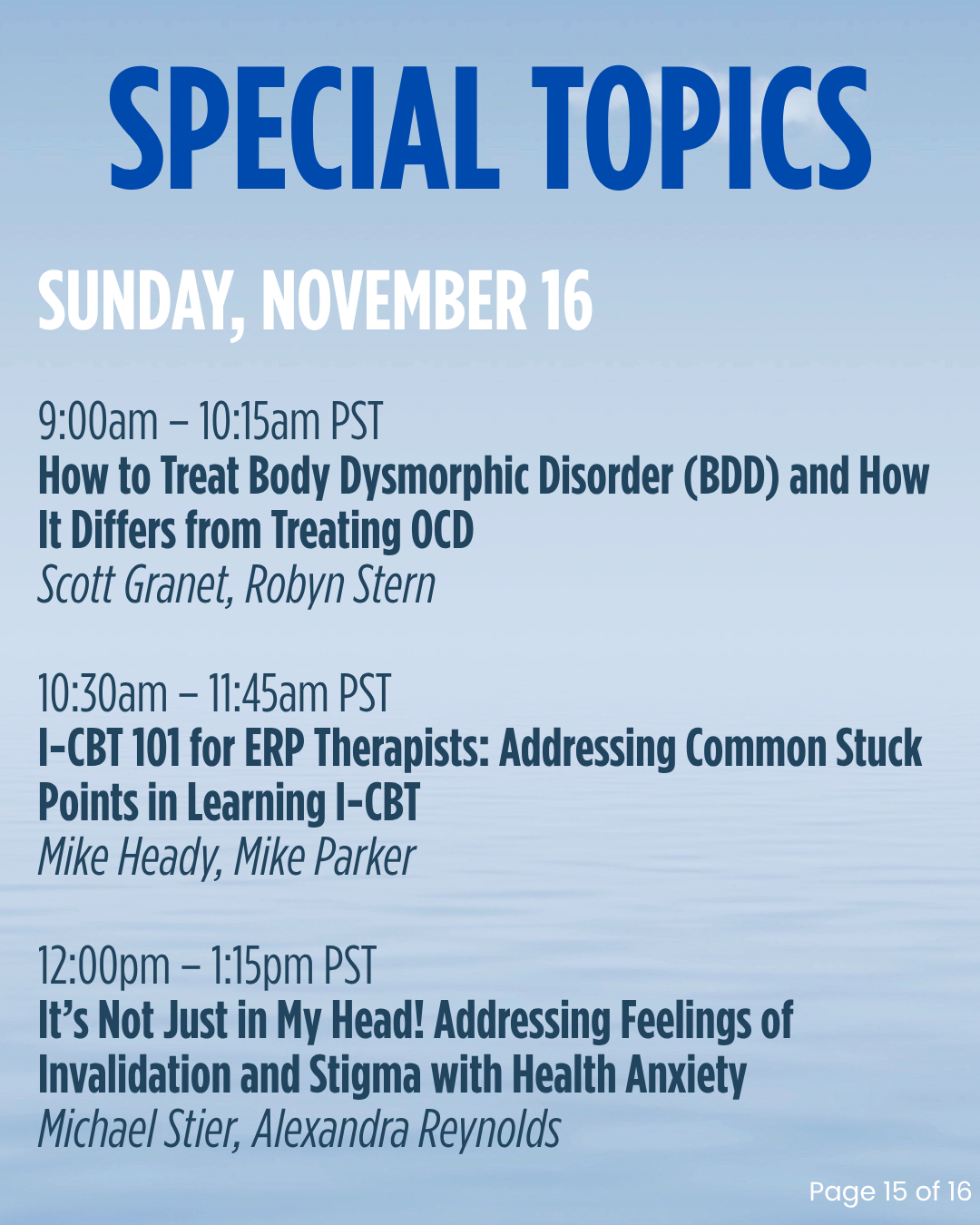 As always, we do not want cost to prevent anyone from attending any of our OCD SoCal events. Please email scholarships@ocdsocal.org to receive complimentary registration through one of our scholarships.