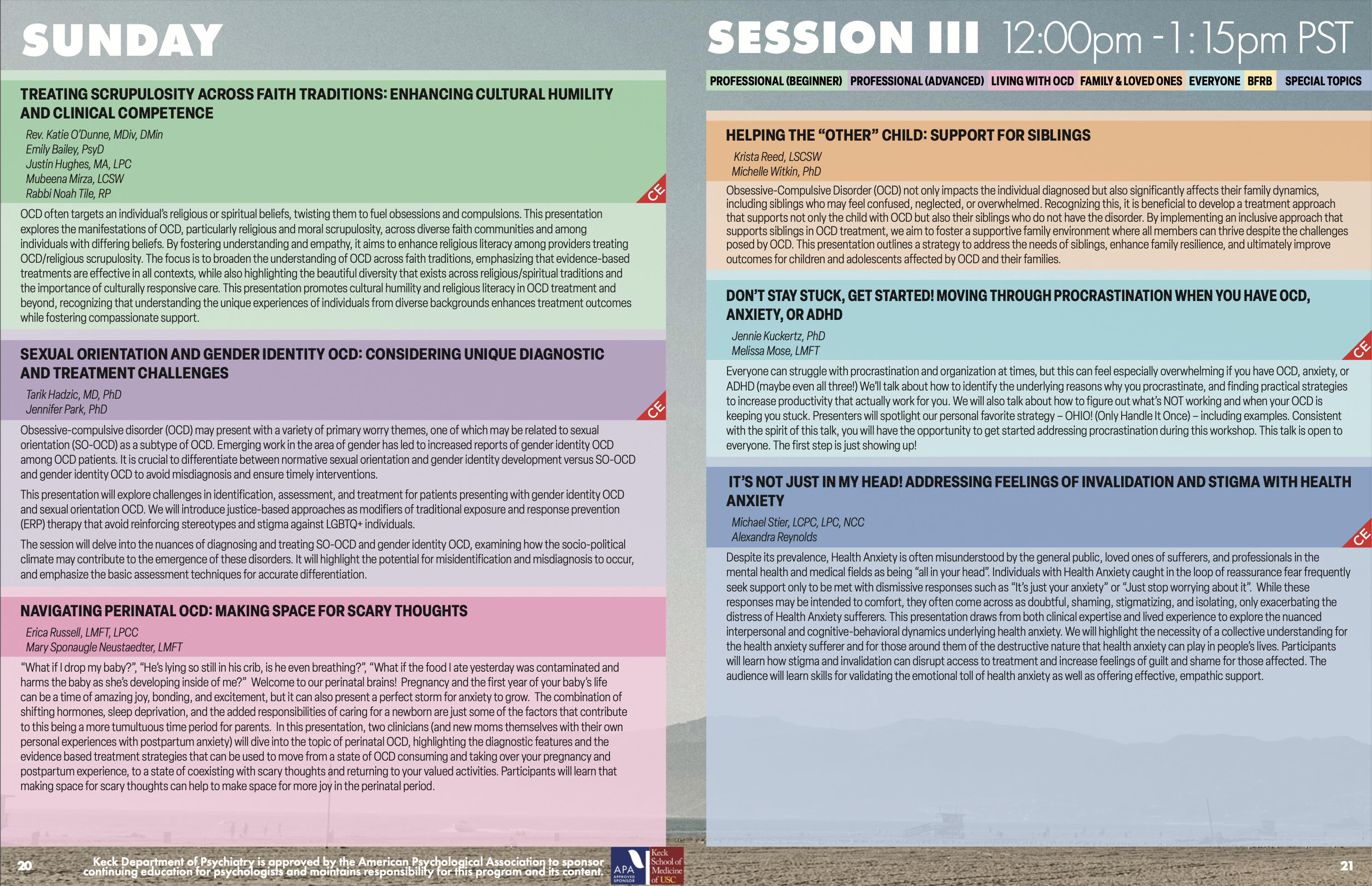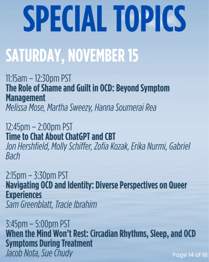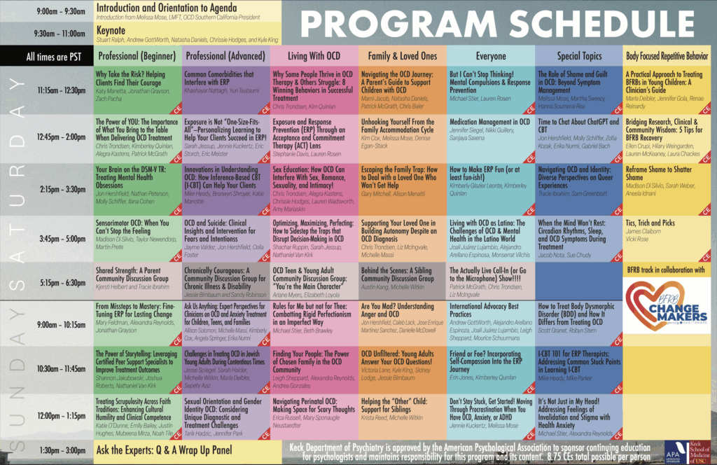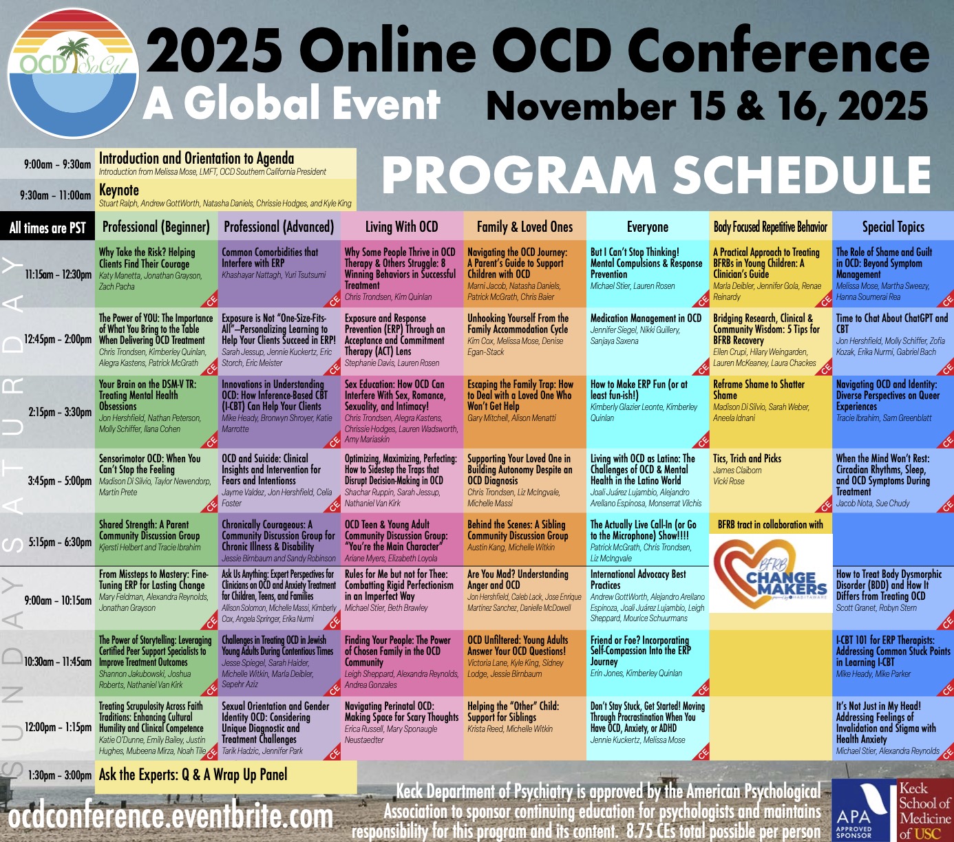 For more information on our conference program, visit here: Conference Program for the 2025 Global, Online OCD Conference! You can also see the conference program in larger size on our website here: Full Conference Program for the Global, Online OCD Conference!