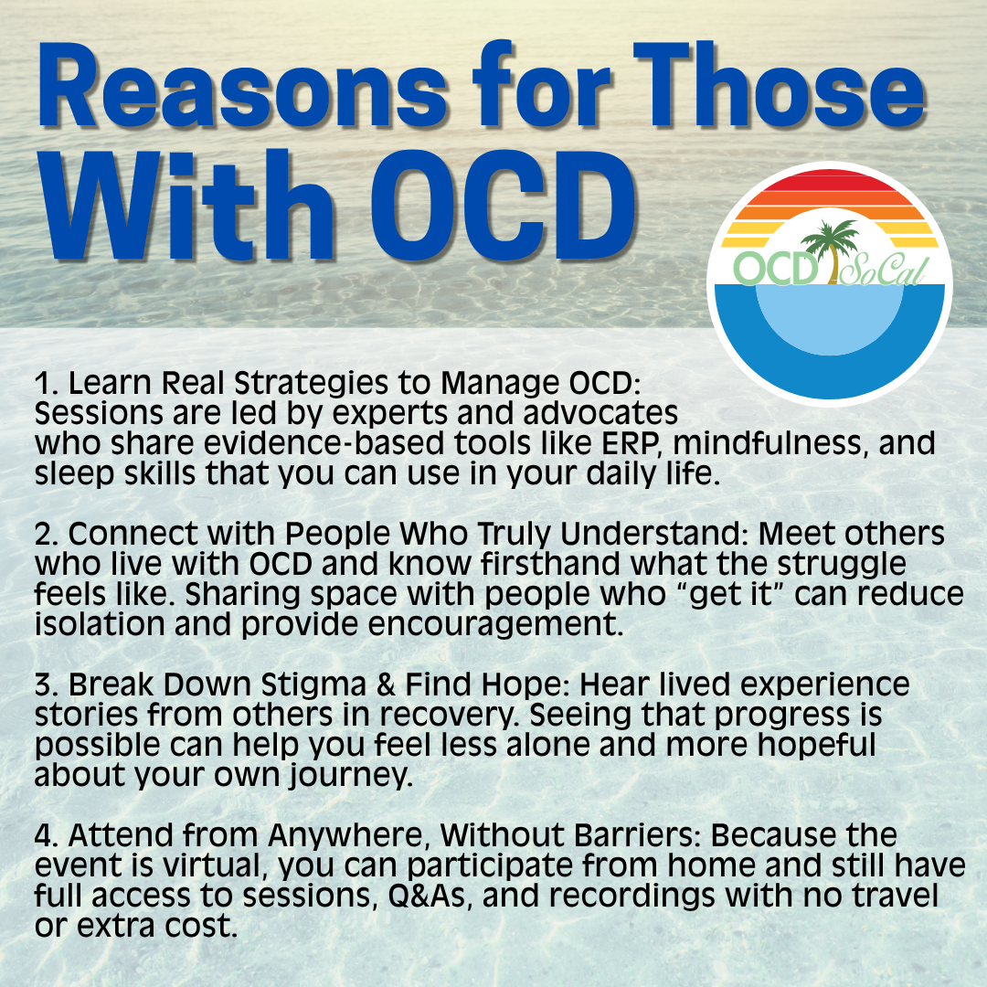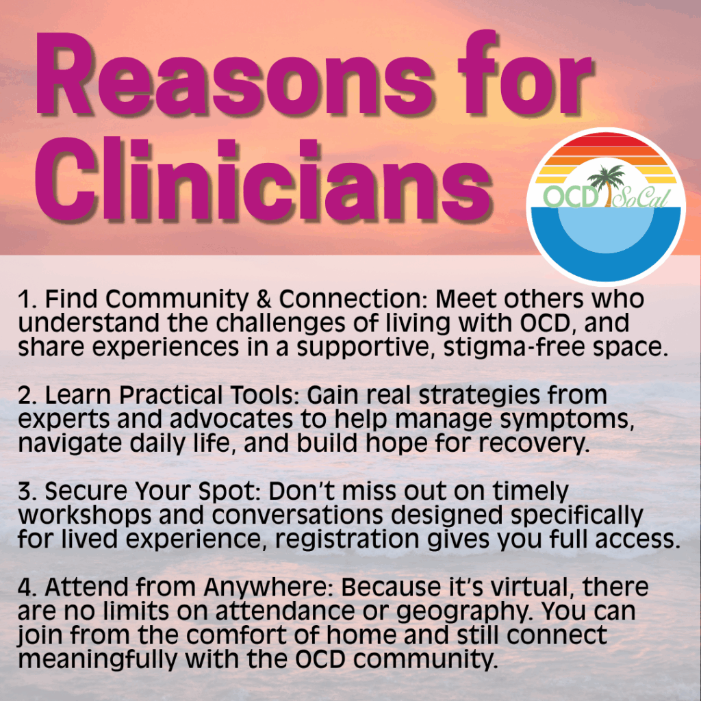 Whether you are a person with OCD, a family member or loved one of someone with the disorder, or a clinician treating OCD, there are so many important reasons to be there on November 15 & 16, 2025!